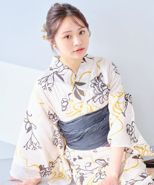売り切れ[浴衣3点セット]モダン頂花(芥子色)