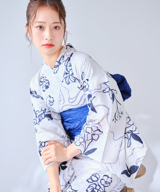 [浴衣3点セット]夏の夜を照らす百合(紺)