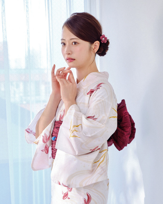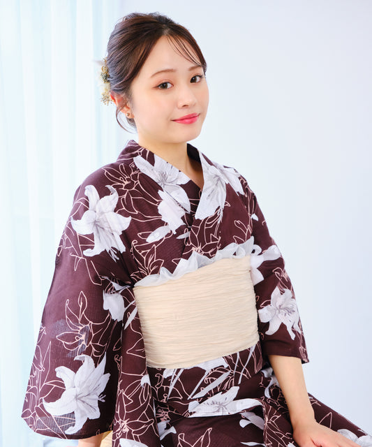 [浴衣3点セット]夏の夜を照らす百合(小豆)