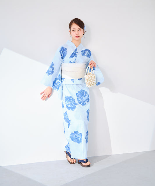 [浴衣3点セット]ロマン百花繚乱(勿忘草)