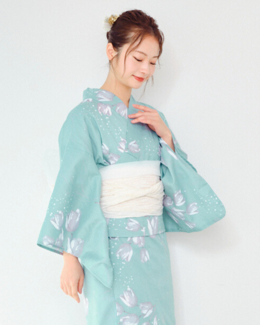 売り切れ[浴衣3点セット]モダン頂花(消炭色)