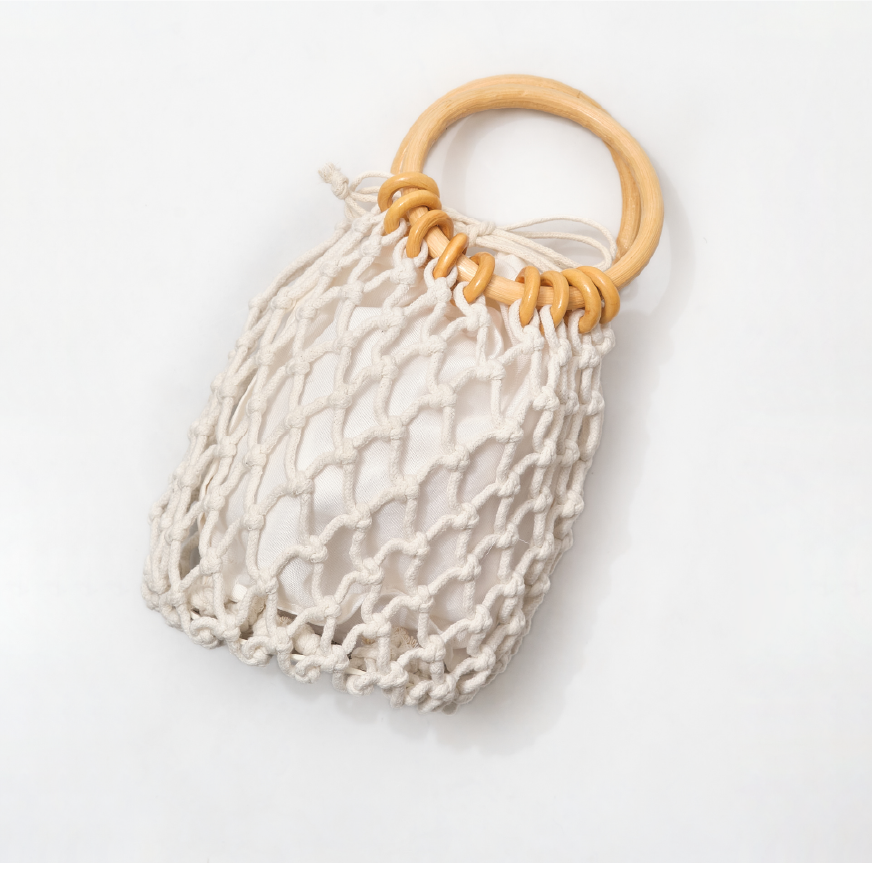 ウッドのサークルハンドルが和装にぴったりなネットバッグ。