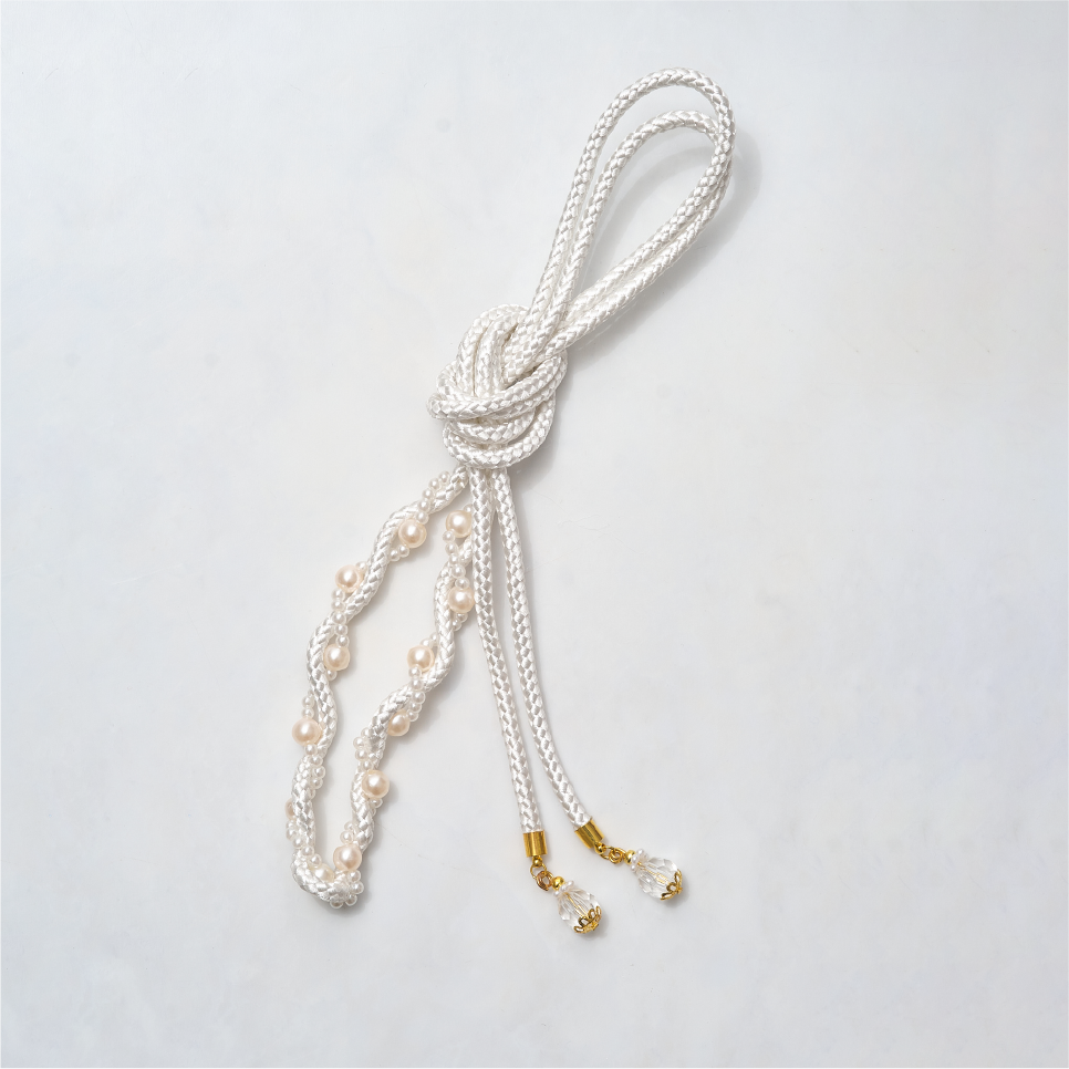 キラッと光る大小のパールビーズが巻き付けられた飾り紐。